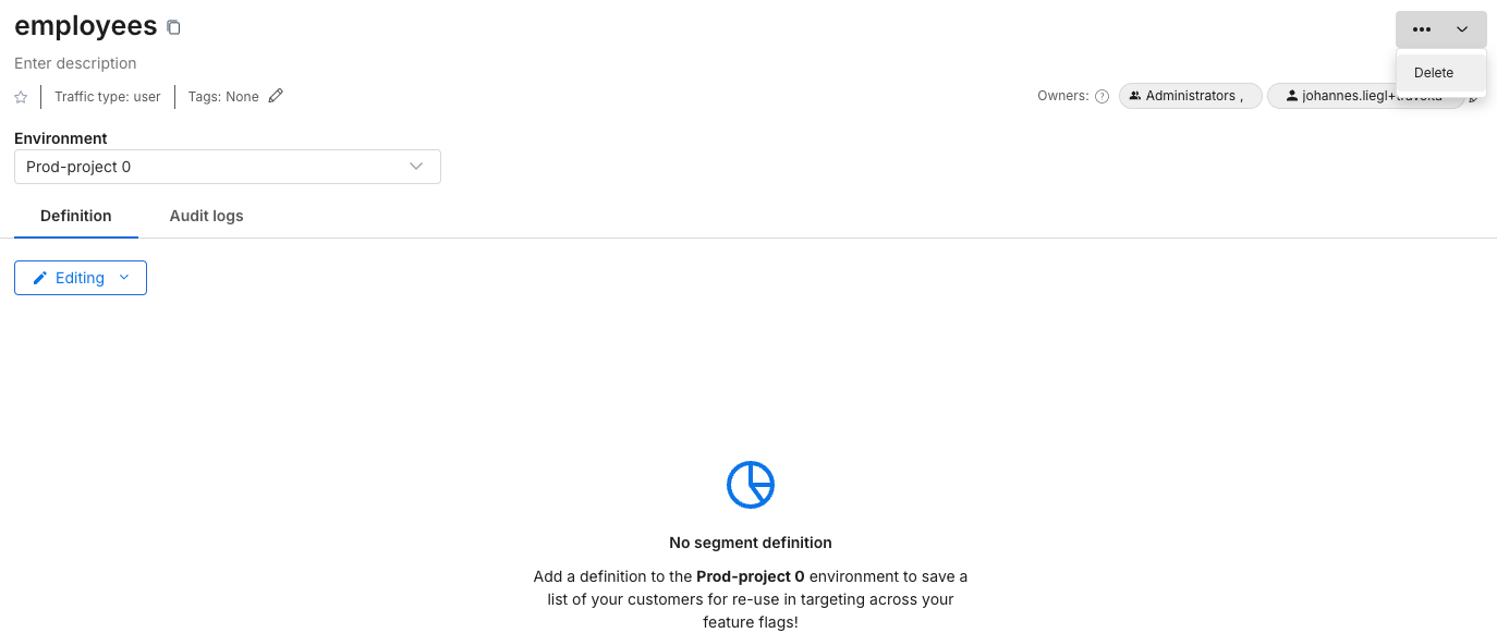 • Then, delete the segment definition and repeat these steps for all environments.