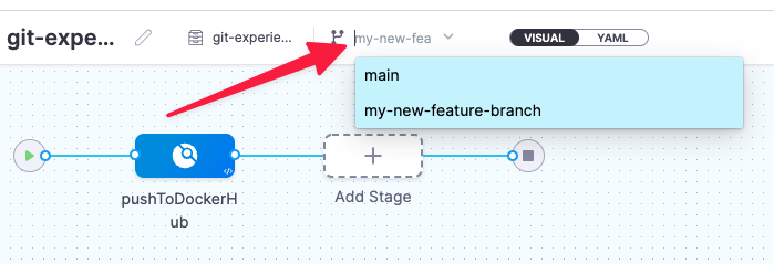 This workflow assumes that your branch has a .harness subfolder with the same pipeline and input set as main.