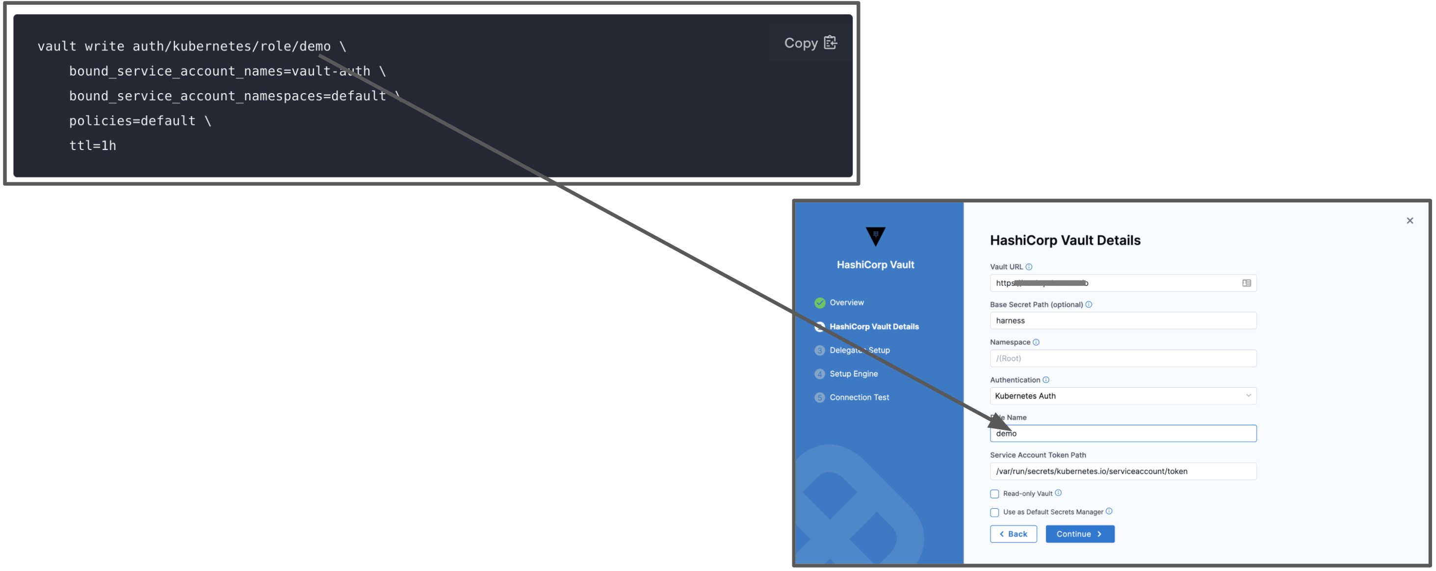 - Make sure that the Harness Delegate can connect to the Vault URL.